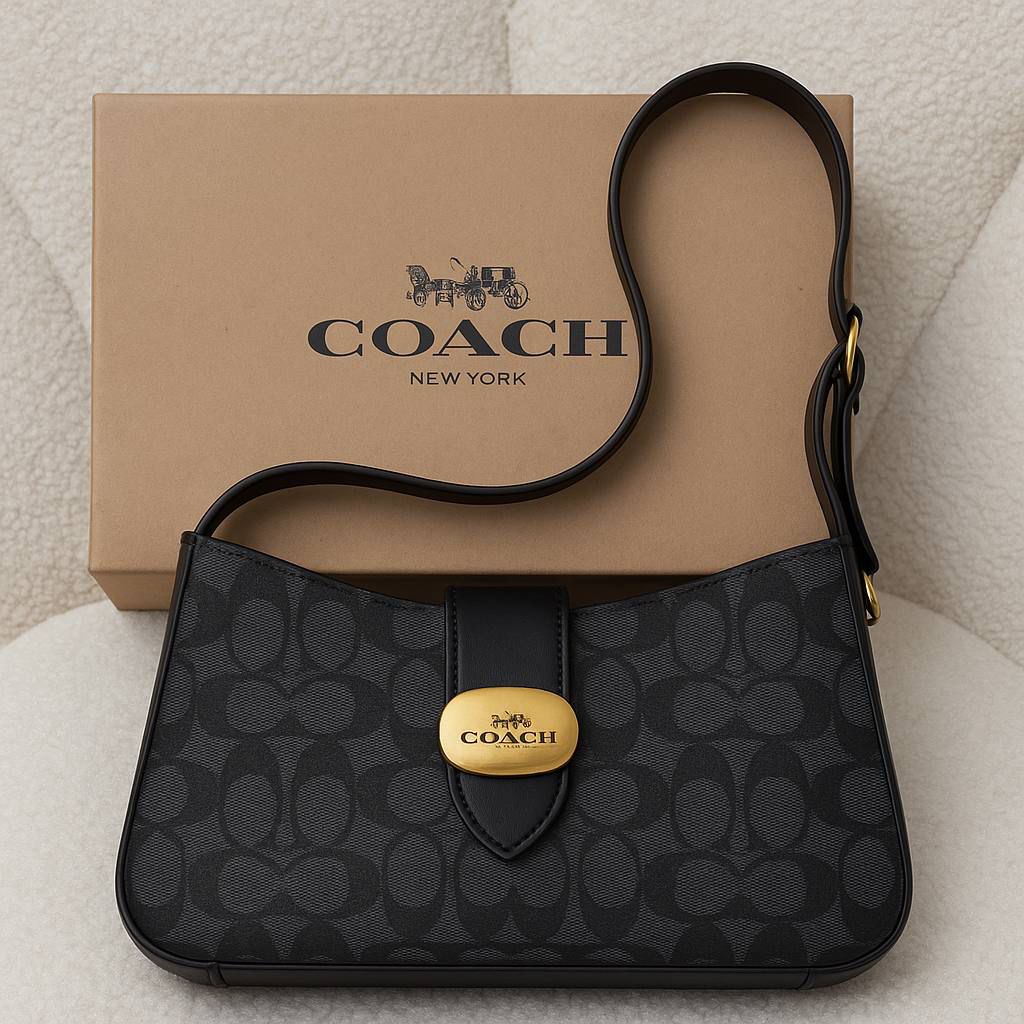 شنطة كتف كوتش بنقشة الشعار - أسود/فحمي